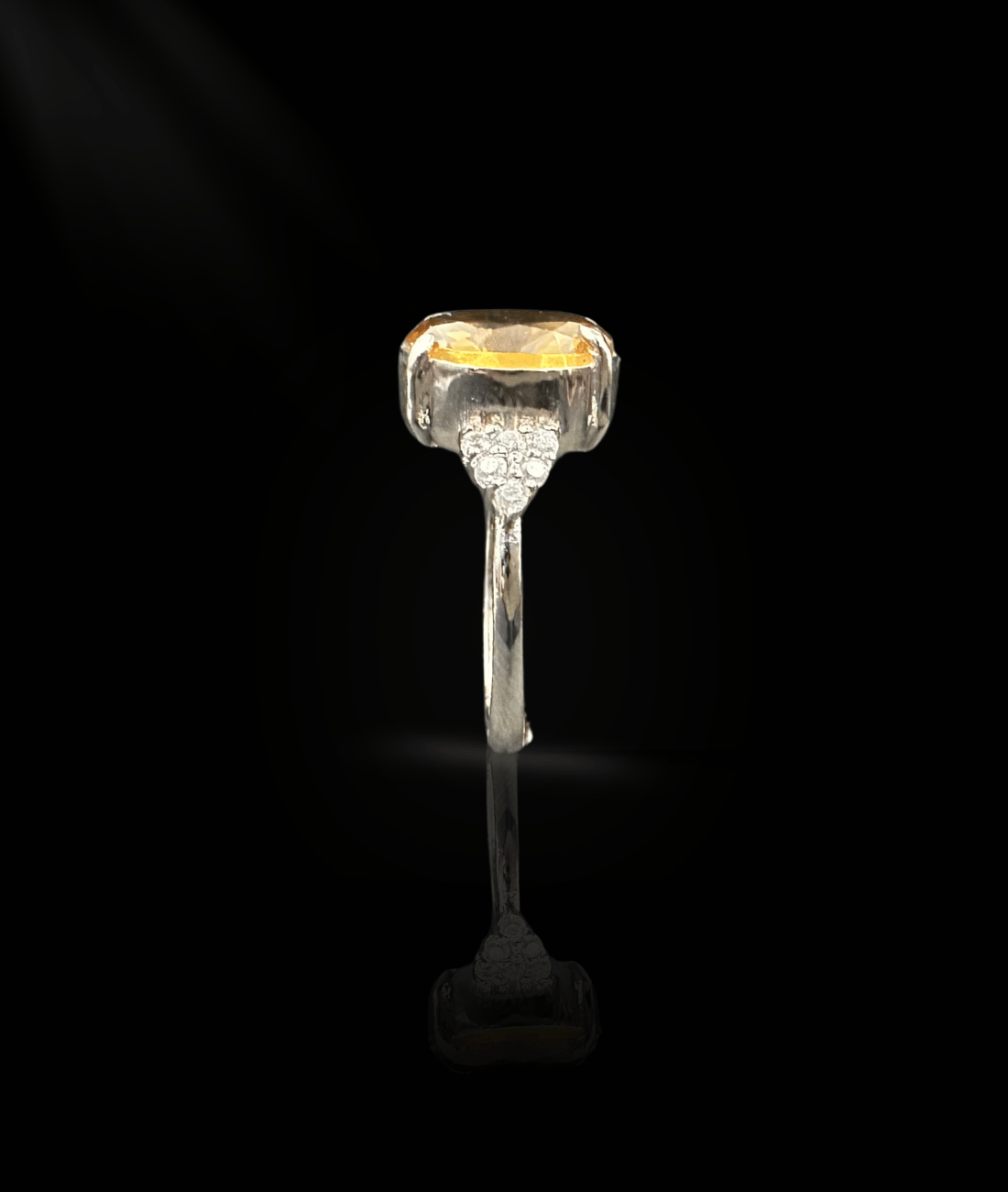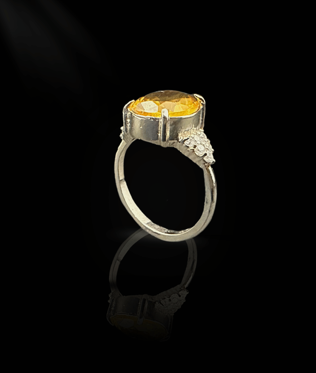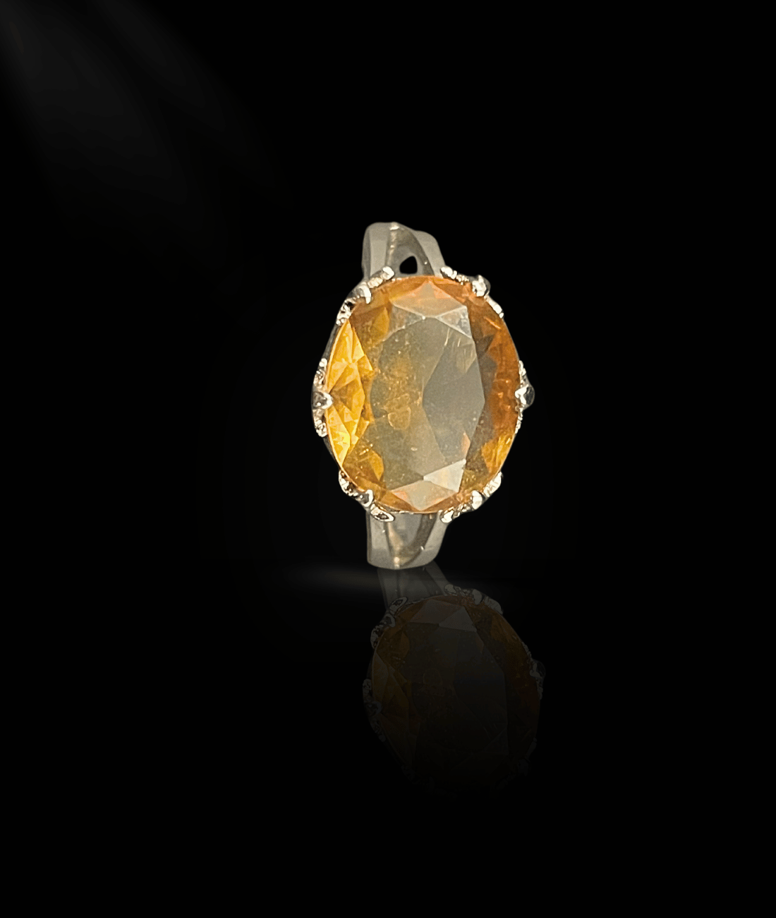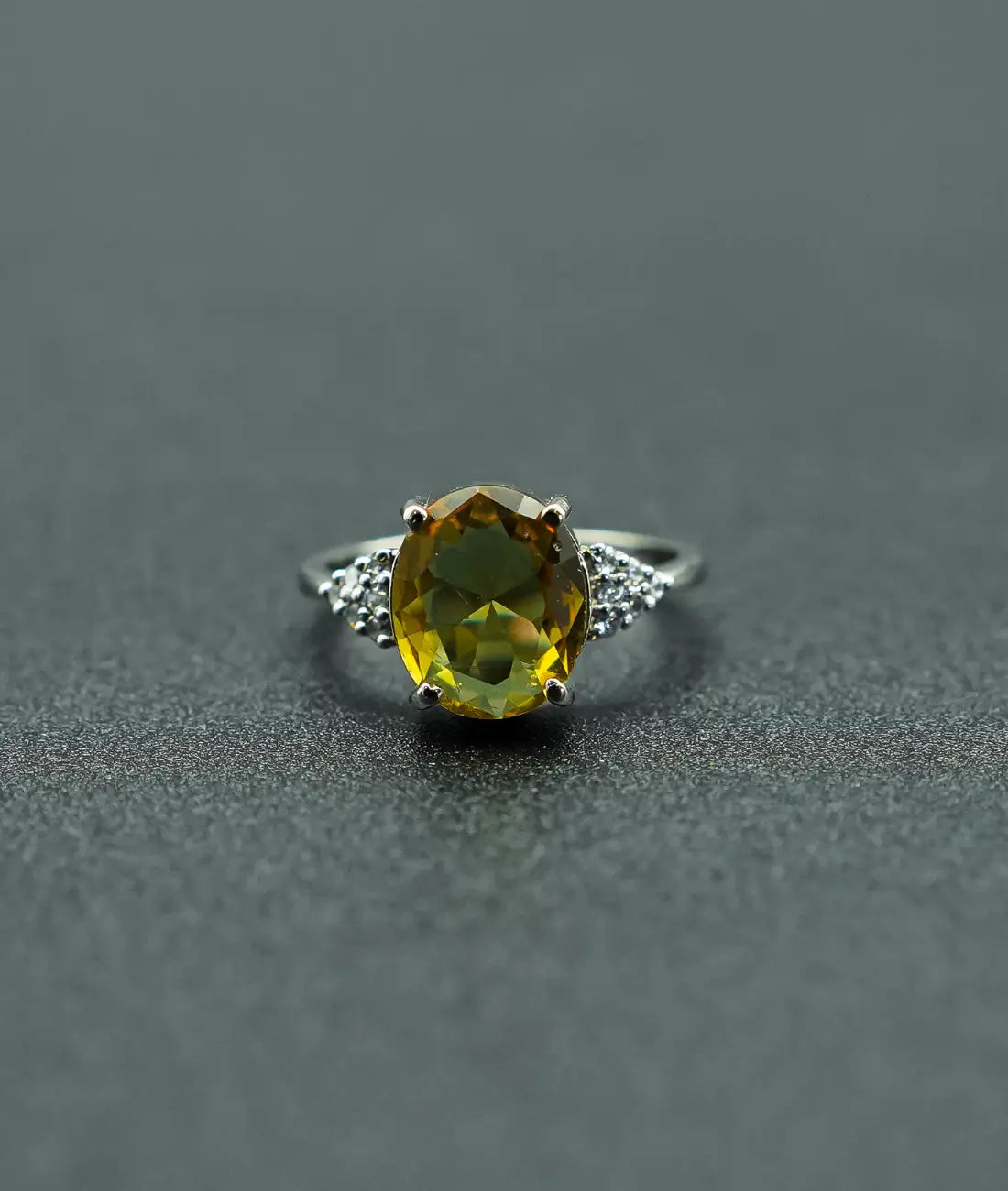 A bold 12 mm oval-cut Zultani shifts honey-peach at sunrise to emerald at dusk. Sculpted silver flowers cradle the gem, their rhodium finish gleaming like moonlit petals. Sleek yet striking, Enchanted Dusk moves effortlessly from office wins to rooftop gatherings.