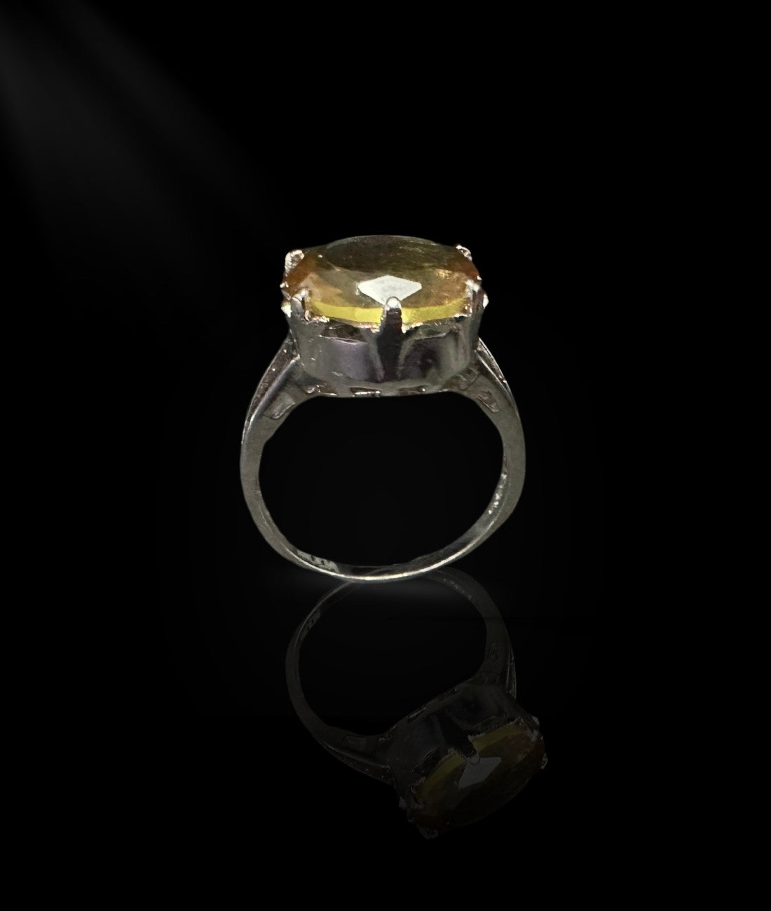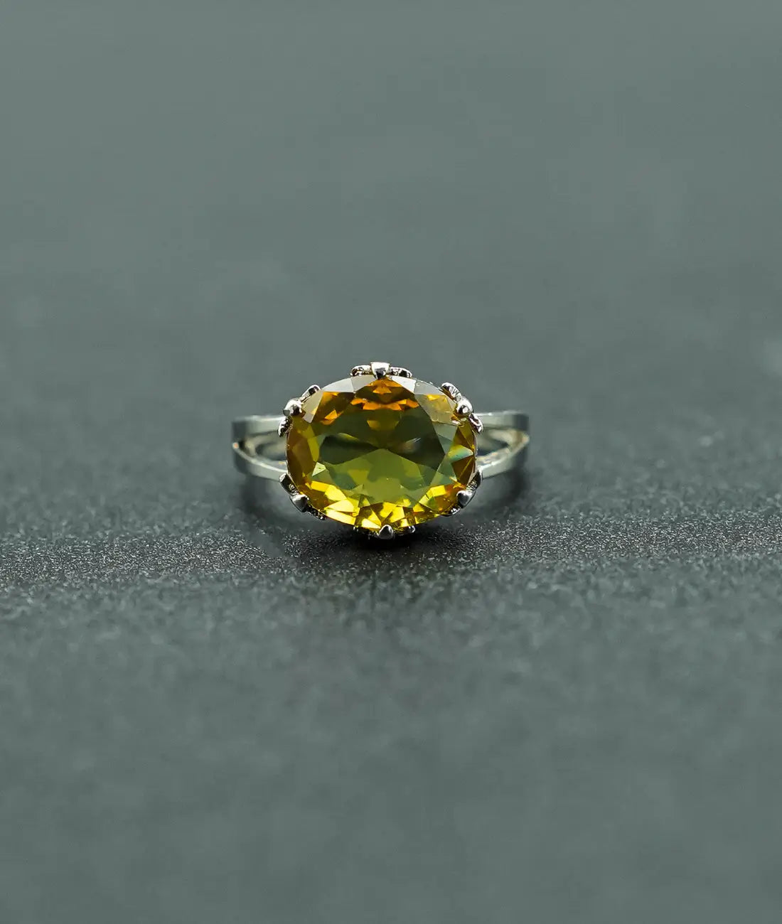 A bold 12 mm oval Zultani flips from honey-peach noon to emerald evening. Encased in mirror-bright rhodium-finished silver, the ring’s minimalist lines let the color-shift steal every spotlight—from coffee briefings to candle-lit dinners.